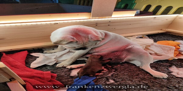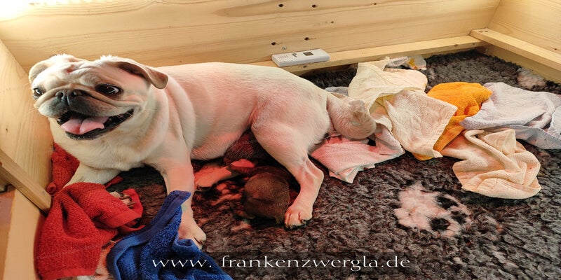Am 07.05.2025 kam Friedas letzter Wurf zur Welt, Einling Qujo.